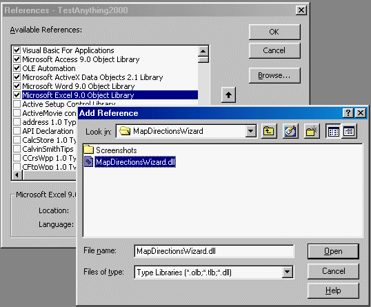 So, once you locate the directory, simply type in the MapDirectionsWizard.dll filename.
