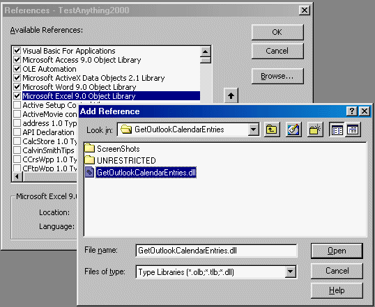 So, once you locate the directory, simply type in the GetOutlookCalendarEntries.dll filename.