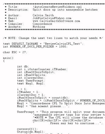 1.!AutoCreateReviewFolders_v2.cpl (new) - Auto collate your documents w/ folder name padding, and handle any leftover documents after the split (see screenshot)