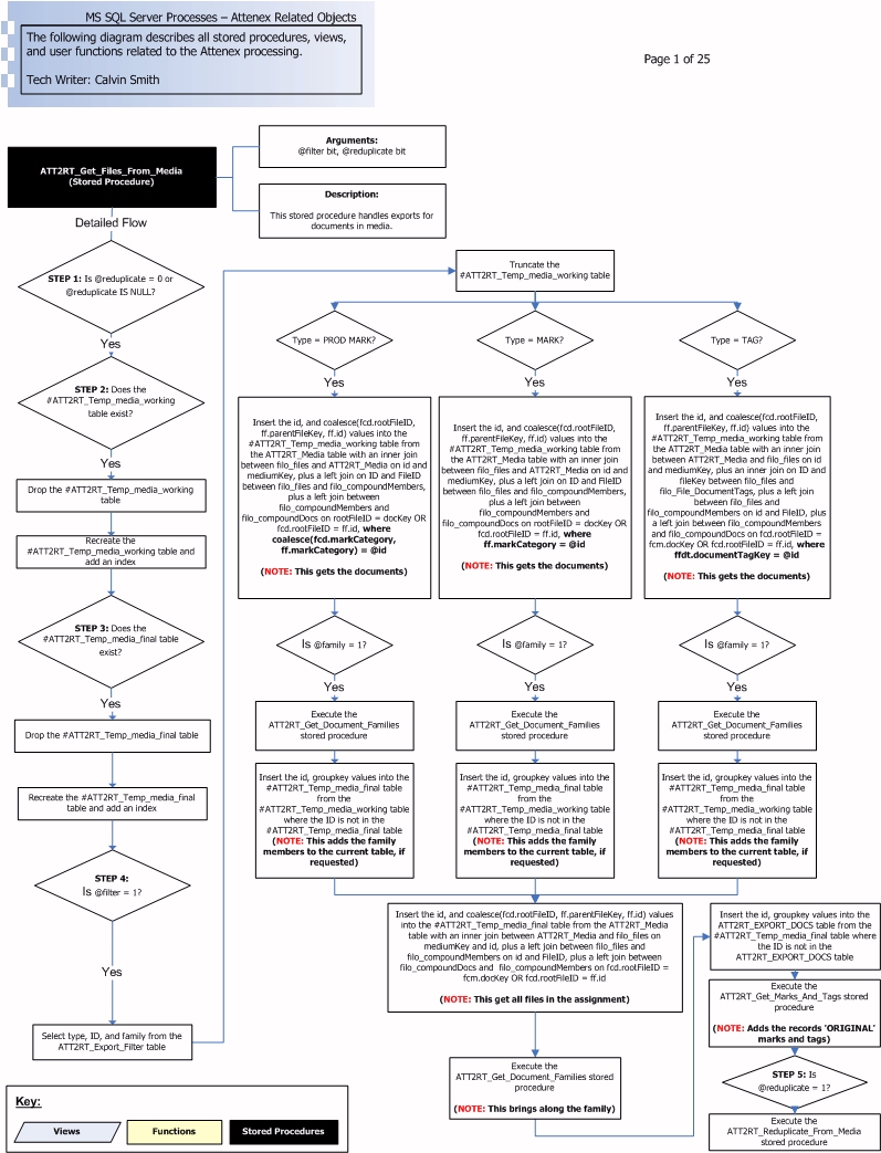 Attenex MS SQL Server – Process Flowcharting Technical Draft – Author: Calvin Smith Preface This document describes the technical processes of the Attenex views, functions, and stored procedures related to the processes that were written in-house. This document assumes that the reader has a general knowledge of stored procedure programming and a general understanding of the Attenex SQL Server schema.